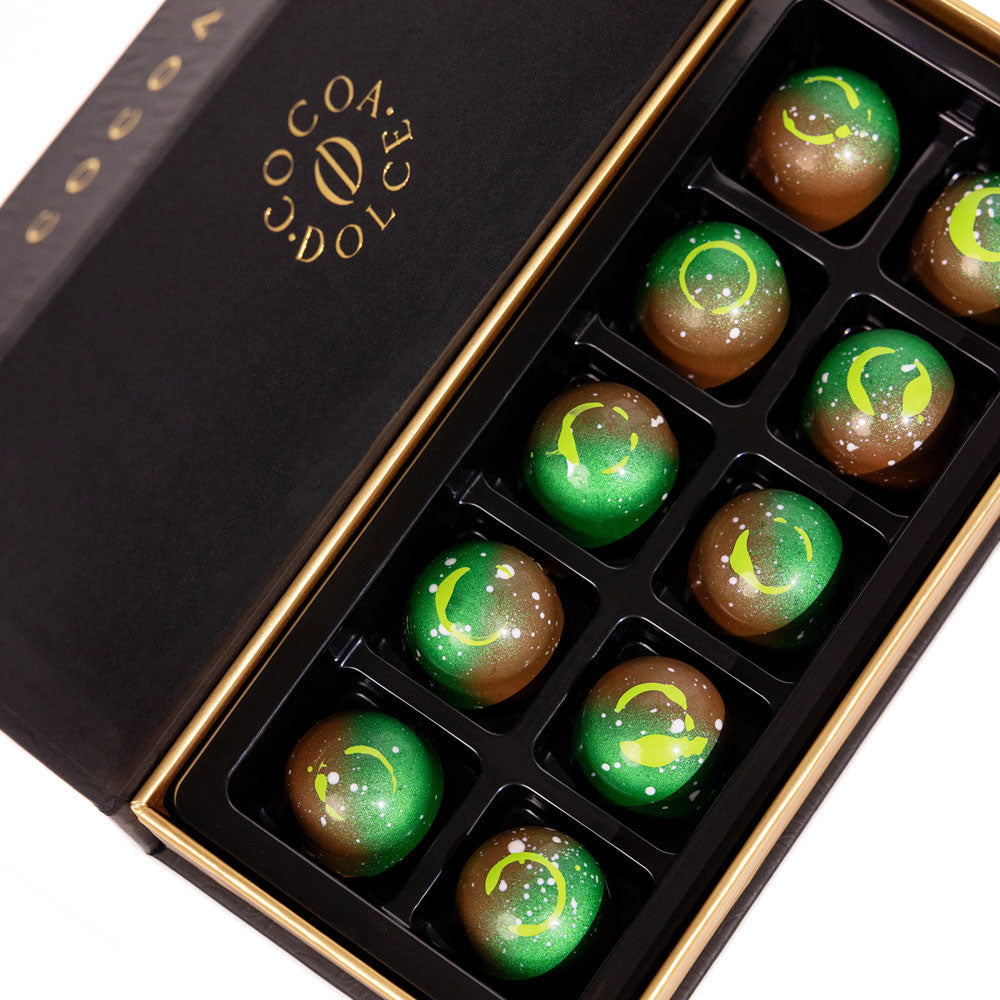We’re excited to debut Cocoa Dolce’s discerning take on Dubai Chocolate—an unexpectedly green, gregarious concoction of sweet, exotic flavors and textures.