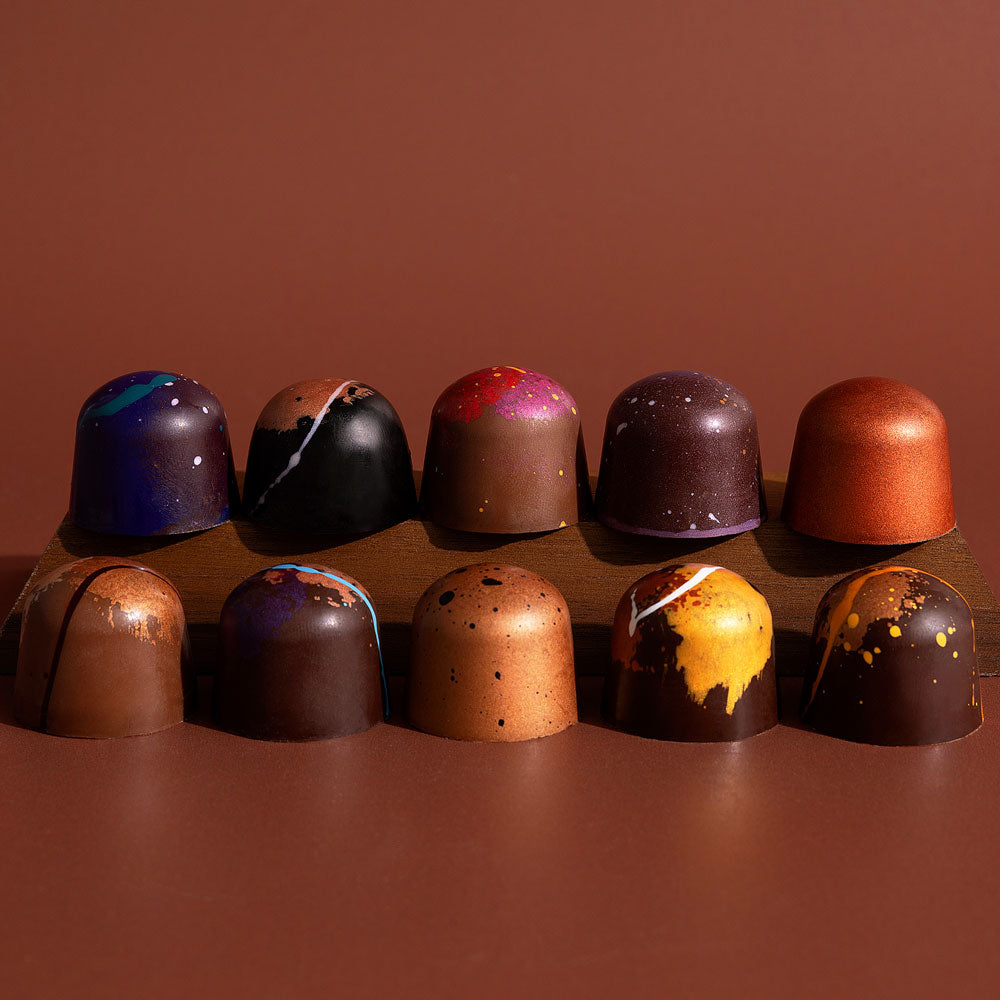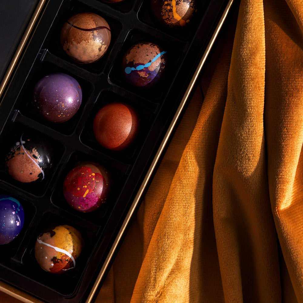 Apple Cider (organic apples), Chocolate (cacao beans, cane sugar, cocoa butter, sunflower lecithin, vanilla beans, full cream milk, lactose, cocoa mass, soy lecithin, natural vanilla flavoring), Cream, Brown Sugar (cane sugar, molasses), Butter (pasteurized cream), Glucose Syrup (glucose syrup, sodium bisulfite, sulfites), Salted Caramel (sugar, cream, vanilla bean paste [sugar, water, vanilla extract, gum tragacanth], butter, coarse salt [salt, yellow prussiate of soda], glucose), Pistachio Crumb (white chocolate, pistachio compound [glucose syrup, invert sugar syrup, almond pulp, pistachio pulp, hazelnut pulp, concentrates [carrot, spirulina], natural flavoring], coarse salt, cocoa butter, sugar, brown sugar, cake flour [enriched flour bleached [wheat flour, niacin, iron, thiamin mononitrate, riboflavin, folic acid], baking powder [sodium bicarbonate, cornstarch, sodium aluminum sulfate, calcium sulfate, monocalcium phosphate], Pistachios, canola oil, Madagascar Vanilla Extract [water, alcohol, sugar, vanilla bean extractive]), Cocoa Butter (cocoa butter and FD&C and Lake Colors: blue 1, blue 2, red 40, yellow 5, yellow 6, natural colors, TiO2), Cherry Pate de Fruit (water, sugar, black cherry puree, pectin, tartaric acid), Inverted Sugar Syrup, Madagascar Vanilla Extract, Pecans, Pumpkin, Irish Whiskey (rye), Baking Soda (sodium bicarbonate), Pistachio Compound, Vanilla Bean Paste, Raw Sugar, Maple Syrup, Sour Cream (cultured cream, grade A whey, modified food starch, sodium phosphate, sodium citrate, guar gum, carrageenan, calcium, sulfate, potassium sorbate, locust bean gum), Coarse salt, Cocoa Powder (alkalized cocoa), Crème Brulee Sauce (milk, cane sugar, egg yolk, natural flavors, sulfites, plant extractives), Cinnamon, Whiskey (rye), Ginger Tea Crystals (cane sugar, honey, ginger), Orange Compound (glucose syrup, invert sugar syrup, concentrated orange juice, citric acid, ethyl alcohol, natural flavoring, modified starch), Espresso Powder, Nutmeg, Allspice, Peppermint Oil