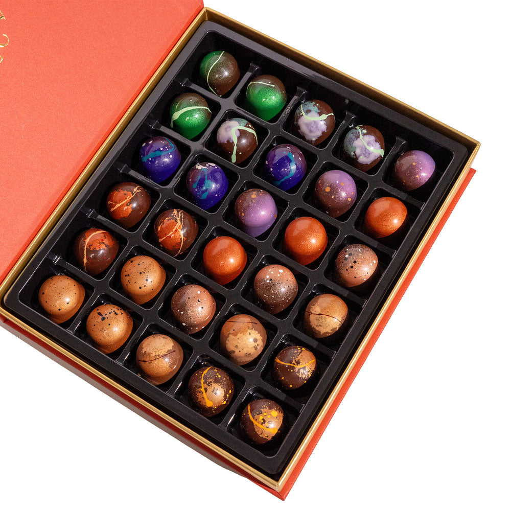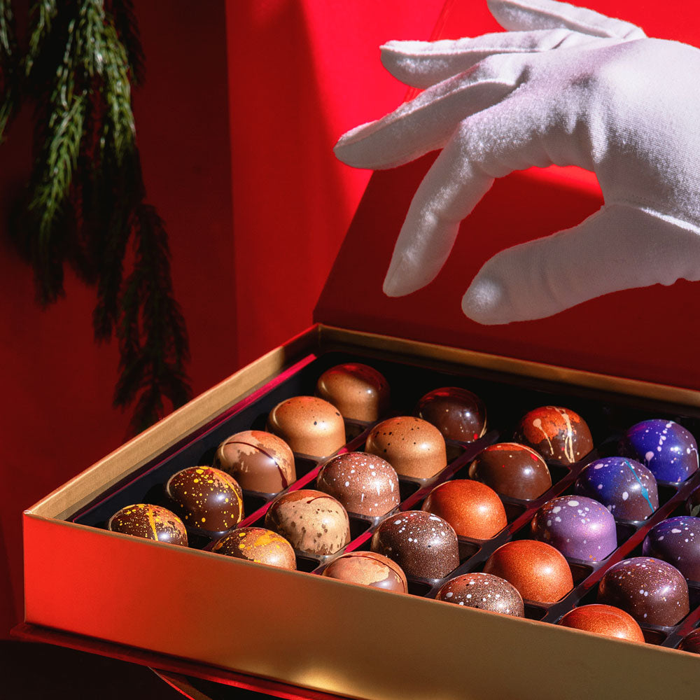 Apple Cider (organic apples), Chocolate (cacao beans, cane sugar, cocoa butter, sunflower lecithin, vanilla beans, full cream milk, lactose, soy lecithin, cocoa mass, natural vanilla flavoring), Cream, Brown Sugar (cane sugar, molasses), Butter [pasteurized cream], Glucose Syrup, Salted Caramel (sugar, butter, cream, glucose, salt, vanilla bean paste [sugar, water, vanilla extract, gum tragacanth]), Pistachio Crumb (white chocolate, pistachio compound [glucose syrup, invert sugar syrup, almond pulp, pistachio pulp, hazelnut pulp, concentrates [carrot, spirulina], natural flavoring], coarse salt [salt, yellow prussiate of soda], cocoa butter, sugar, brown sugar, cake flour [enriched flour bleached [wheat flour, niacin, iron, thiamin mononitrate, riboflavin, folic acid], baking powder [sodium bicarbonate, cornstarch, sodium aluminum sulfate, calcium sulfate, monocalcium phosphate], pistachios, canola oil, Madagascar vanilla extract [water, alcohol, sugar, vanilla bean extractives]), Cocoa Butter (cocoa butter and FD&C and Lake Colors: blue 1, blue 2, red 40, yellow 5, yellow 6, natural colors, TiO2), Cherry Pate de Fruit (water, sugar, black cherry puree, pectin, tartaric acid), Inverted Sugar Syrup, Madagascar Vanilla Extract, Pecans, Pumpkin, Irish Whiskey (rye), Baking Soda (sodium bicarbonate), Pistachio Compound, Vanilla Bean Paste, Raw Sugar, Maple Syrup, Sour Cream (cultured cream, grade A whey, modified starch, sodium phosphate, sodium citrate, guar gum, carrageenan, calcium, sulfate, potassium sorbate, locust bean gum), Cocoa Powder [alkalized cocoa], Crème Brulee Sauce (milk, cane sugar, egg yolk, natural flavors, sulfites, plant extractives), Cinnamon, Whiskey (rye), Ginger Tea Crystals (cane sugar, honey, ginger), Orange Compound (glucose syrup, inverted sugar syrup, concentrated orange juice, citric acid, ethyl alcohol, natural flavoring, color [carotene], modified starch), Espresso Powder, Nutmeg, Allspice, Peppermint Oil