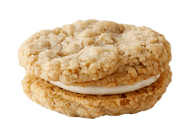 House-made vanilla buttercream sandwiched between two soft cinnamon oatmeal cookies.