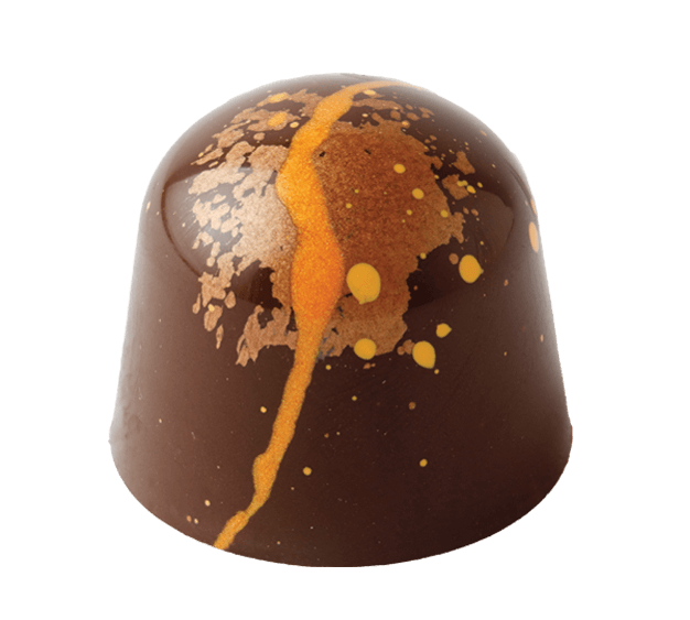 A blend of spiced pumpkin and creamy espresso ganache, kissed with a touch of bourbon in a dark chocolate shell.