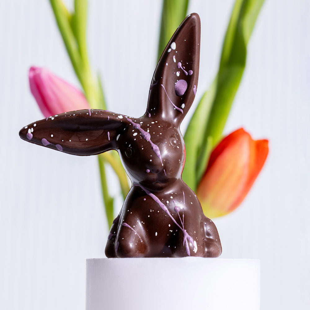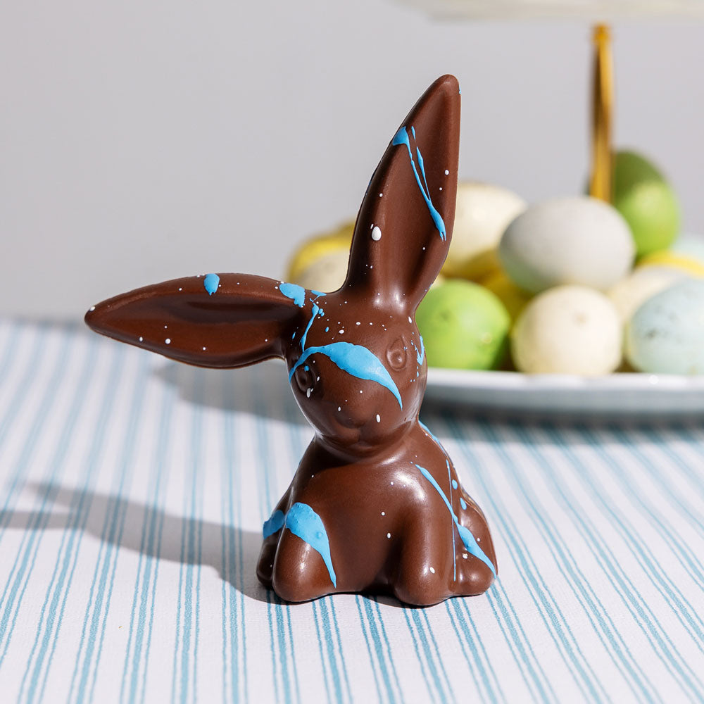 Our most popular Easter item, perfect for any bunny on your Easter shopping list. Premium Belgian 54% dark or milk chocolate β hand-painted with spring splatter colors. But hurry, these bunnies will hop away quick! Individually priced. Does not include egg.