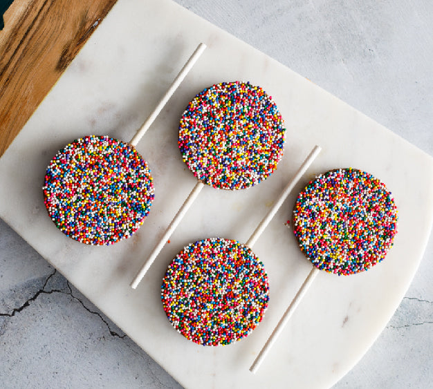 Who doesn't love a little sprinkle in their life? This Belgian milk chocolate sucker is all dolled up and ready for YOU!! Individually priced.
